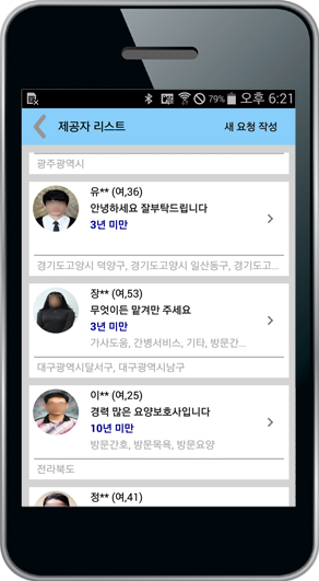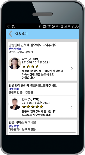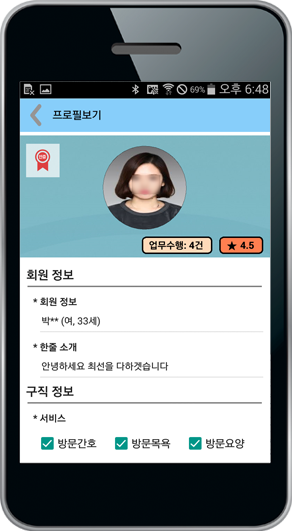 내가 원하는 요양보호사, 간병사를 선택하세요. 간신뢰할 수 있는 요양보호사, 간병사 정보확인이 됩니다. 신분과 자격은 물론, 경력과 고객평가 보장.