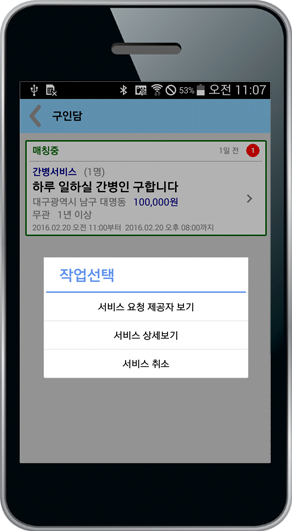 일자리를 찾는 요양보호사.간병사님도 구직정보를 간편하게 등록해보세요. 원하는 장소, 원하는 시간 만큼 활동하고, 내가 원하는 서비스 전문분야 맞춤 지원해보세요.