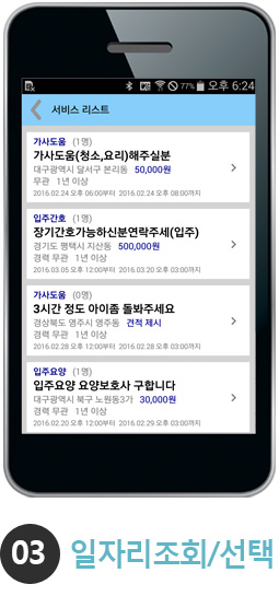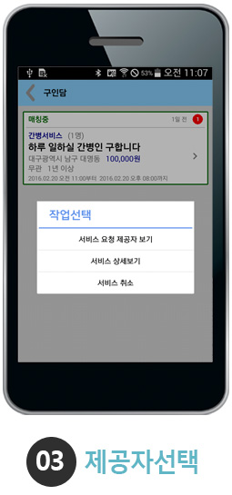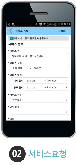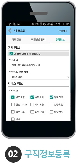 경력, 지역, 근무조건 등의 정보를 입력하시면 서비스제공자로 됩니다.