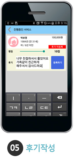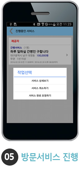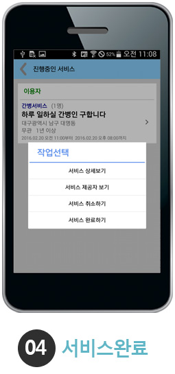 매칭이 완료되면 서비스를 진행하고, 해당 서비스를 완료합니다.
